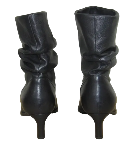 AQUATALIA Maddy Black Leather Low-heeled Scrunched Boot Size 8