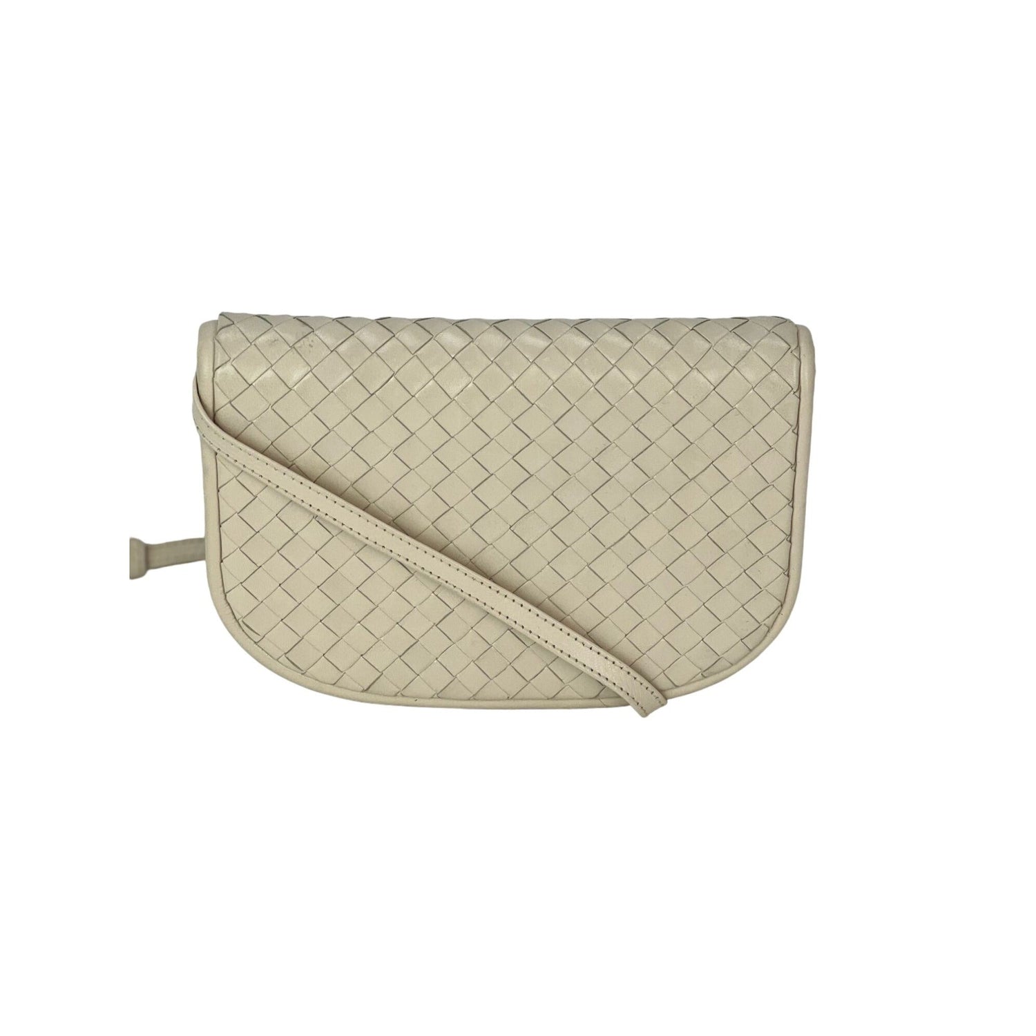 Bottega Veneta Intreciato white leather Shoulder Clutch Bag