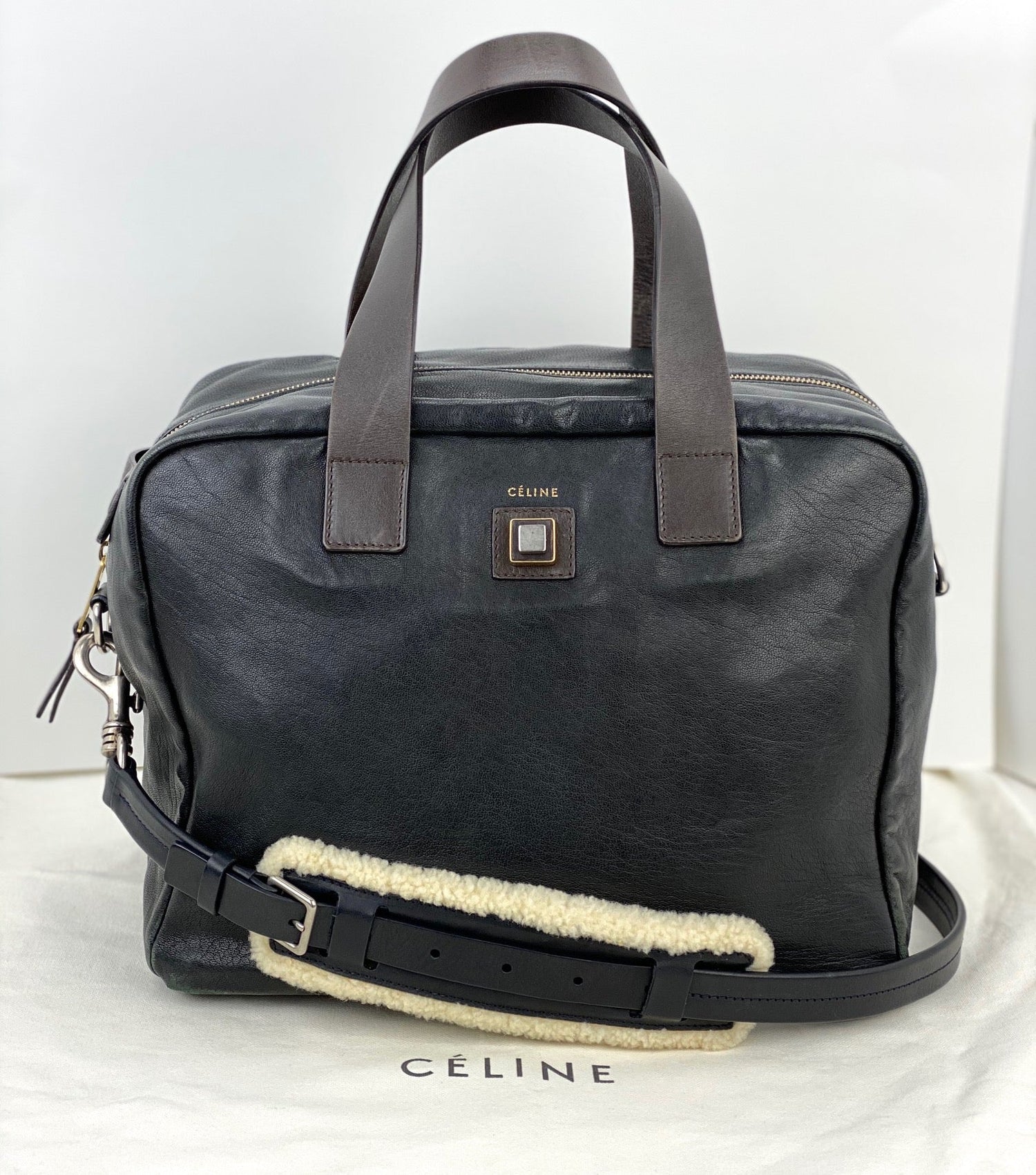 Celine Black Leather Handle Bag Vintage Briefcase messenger Bag