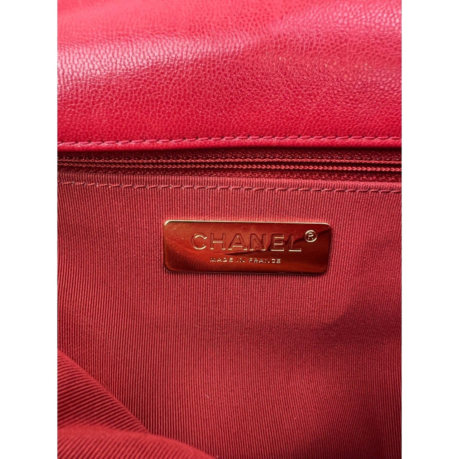 Chanel 19 Large Goatskin Silver and Gold Red Flap Bag