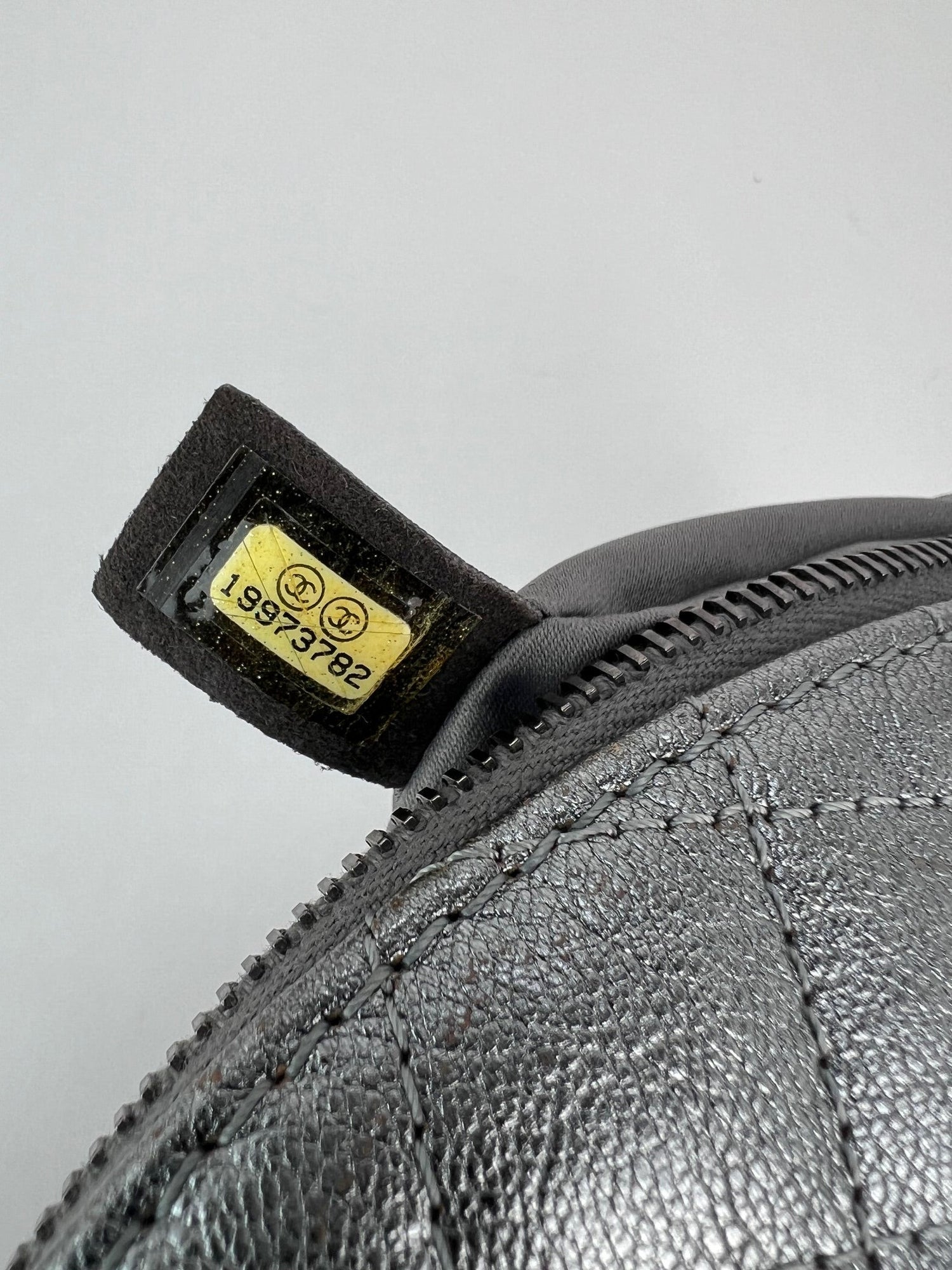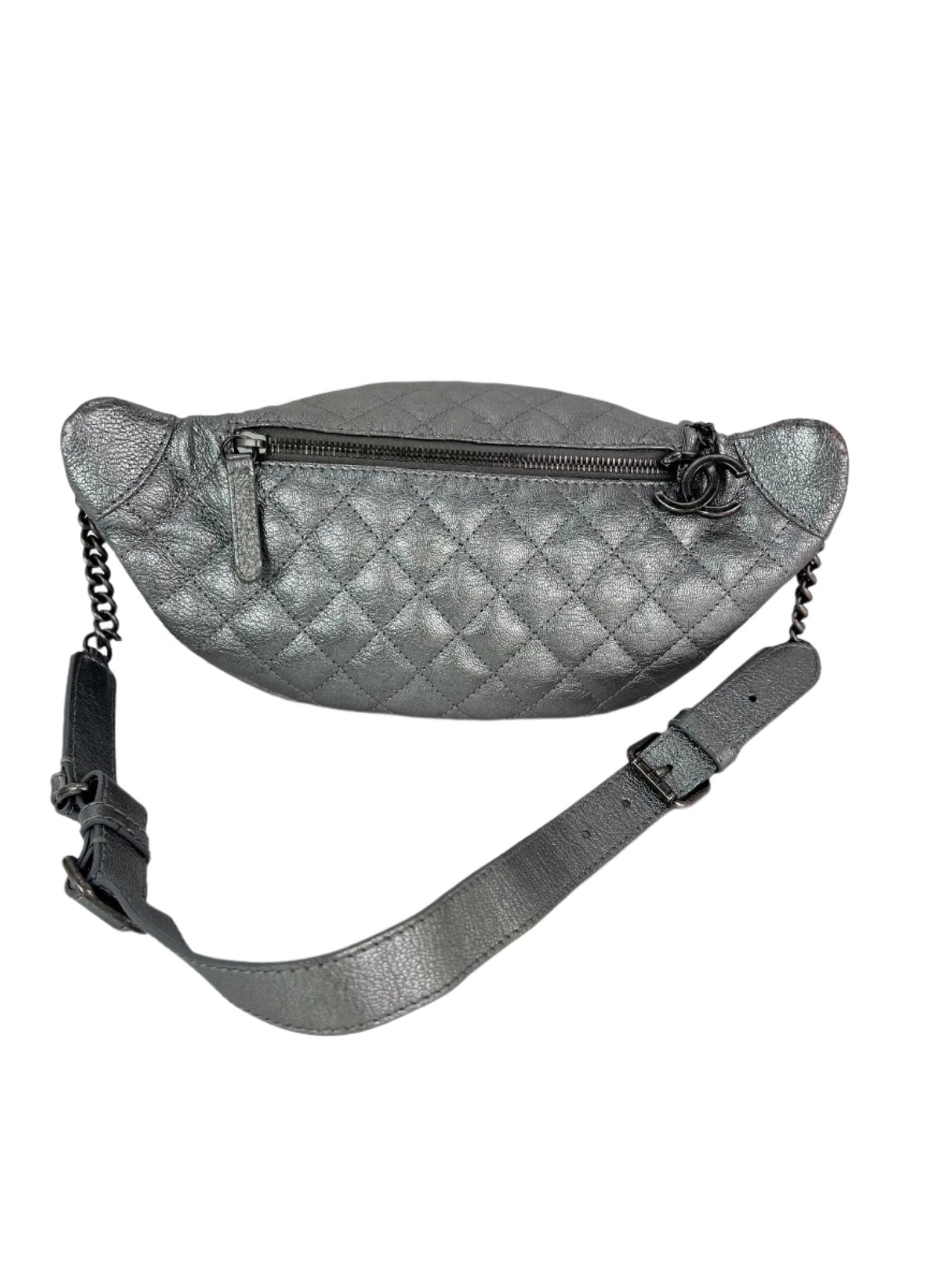 Chanel Metallic Dark Silver Calfskin Quilted Banane Fanny Pack Waist Bag