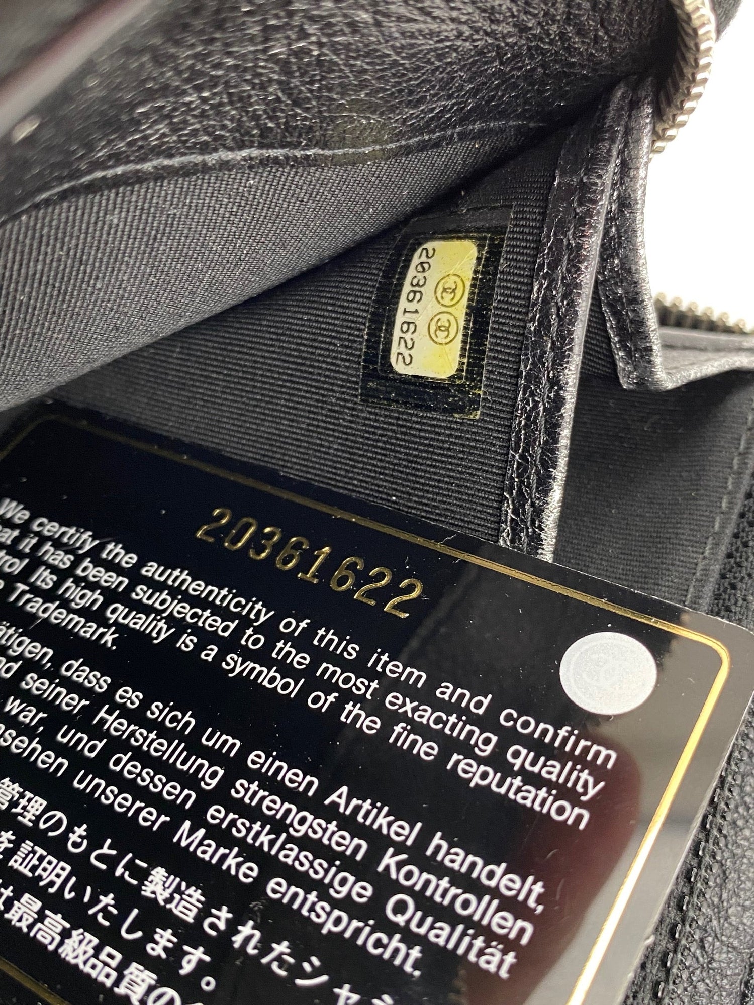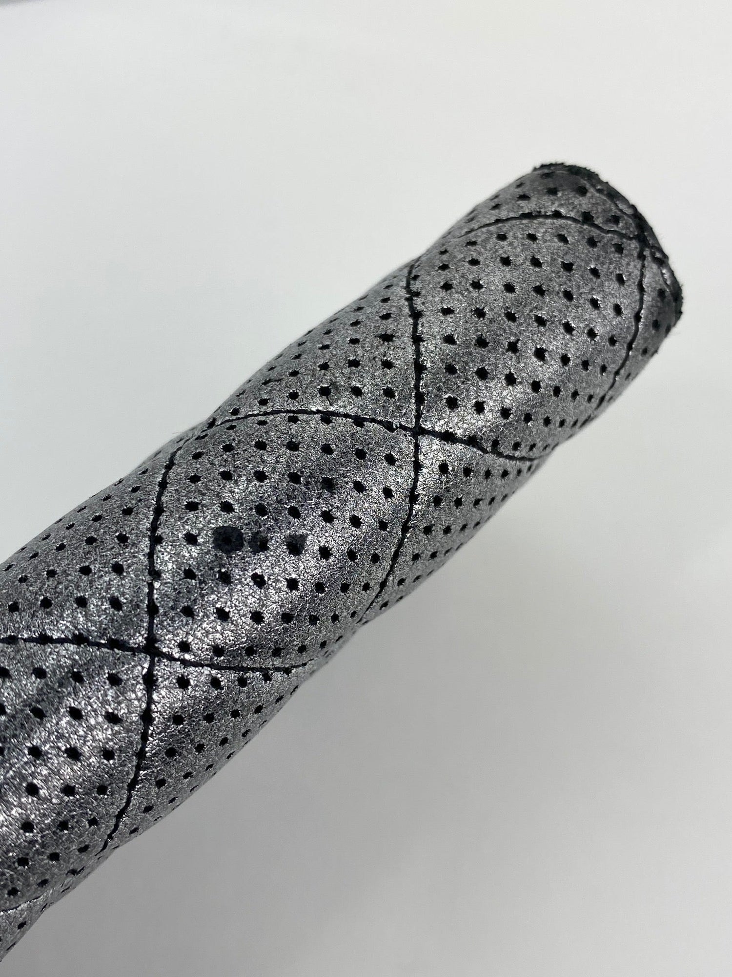Chanel Perforated Silver Metallic Lambskin Quilted Zip Around Wallet Clutch