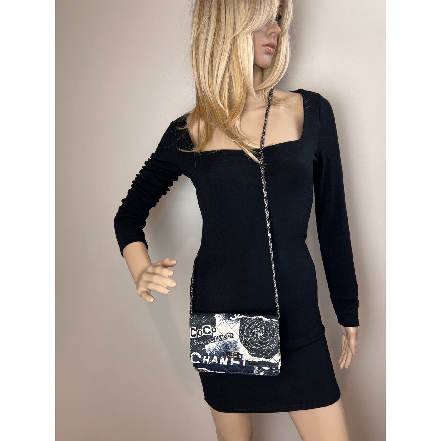 Chanel Reissue 2.55 Quilted Printed Canvas Limited Edition Wallet on a Chain Clutch RARE