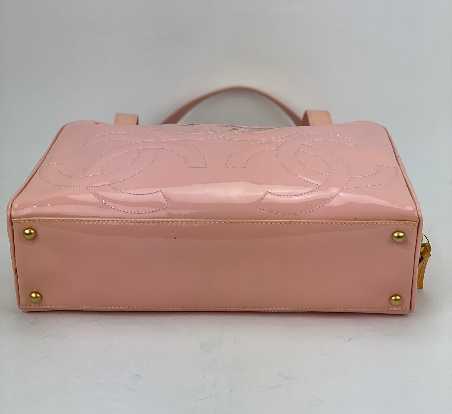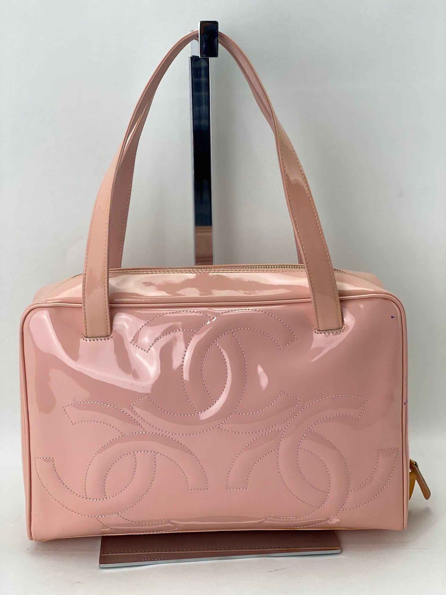 Chanel Triple CC Logo Medium Pink Patent Leather Tote Shoulder Bag Pre owned