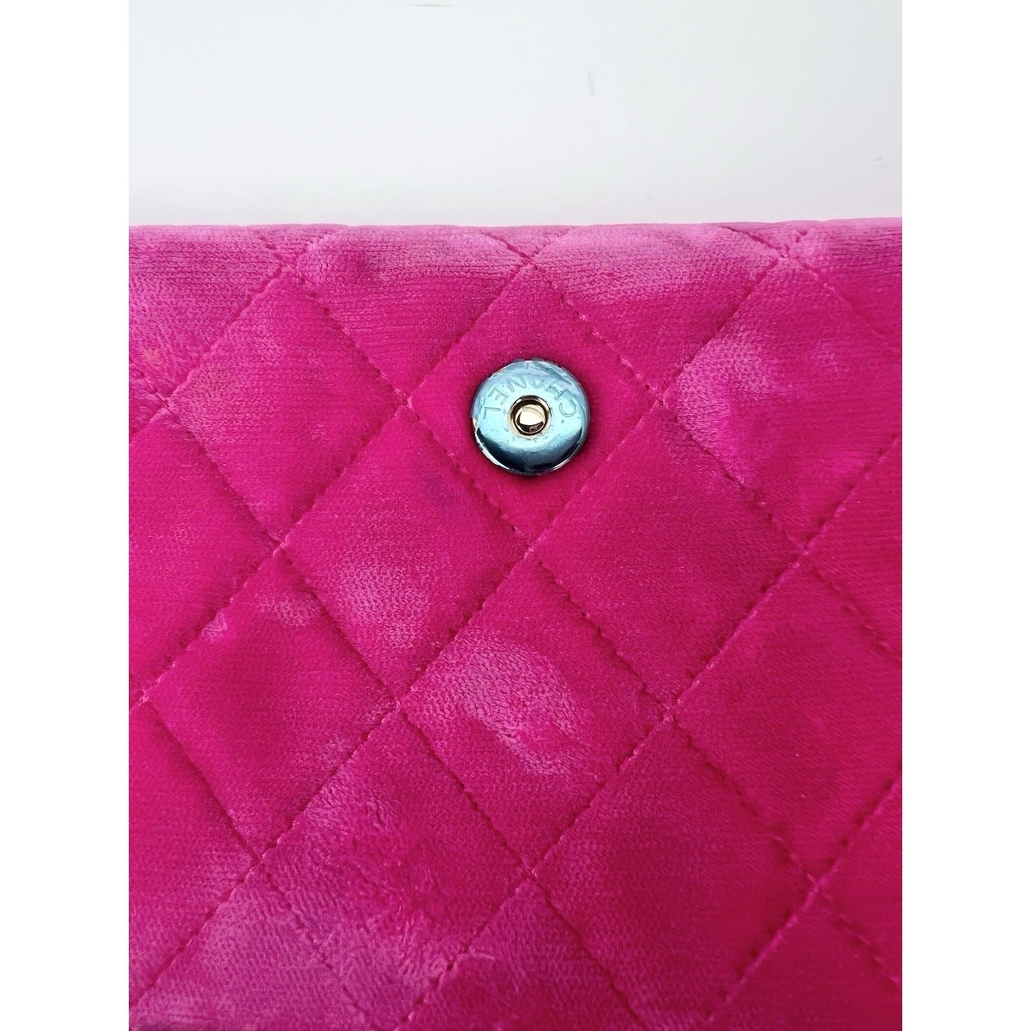 Chanel Velvet Quilted Timeless Fuchsia Wallet on a Chain Clutch Bag
