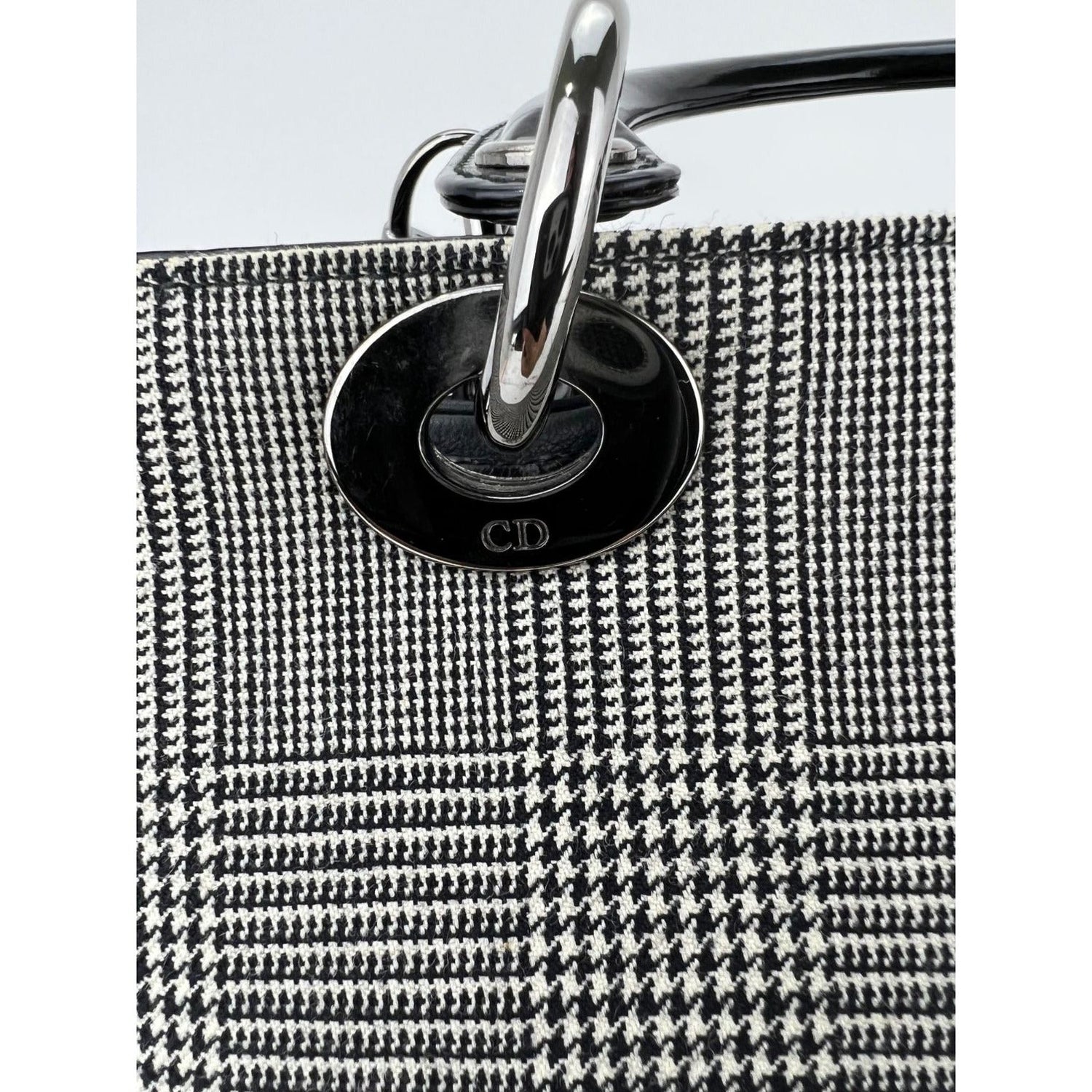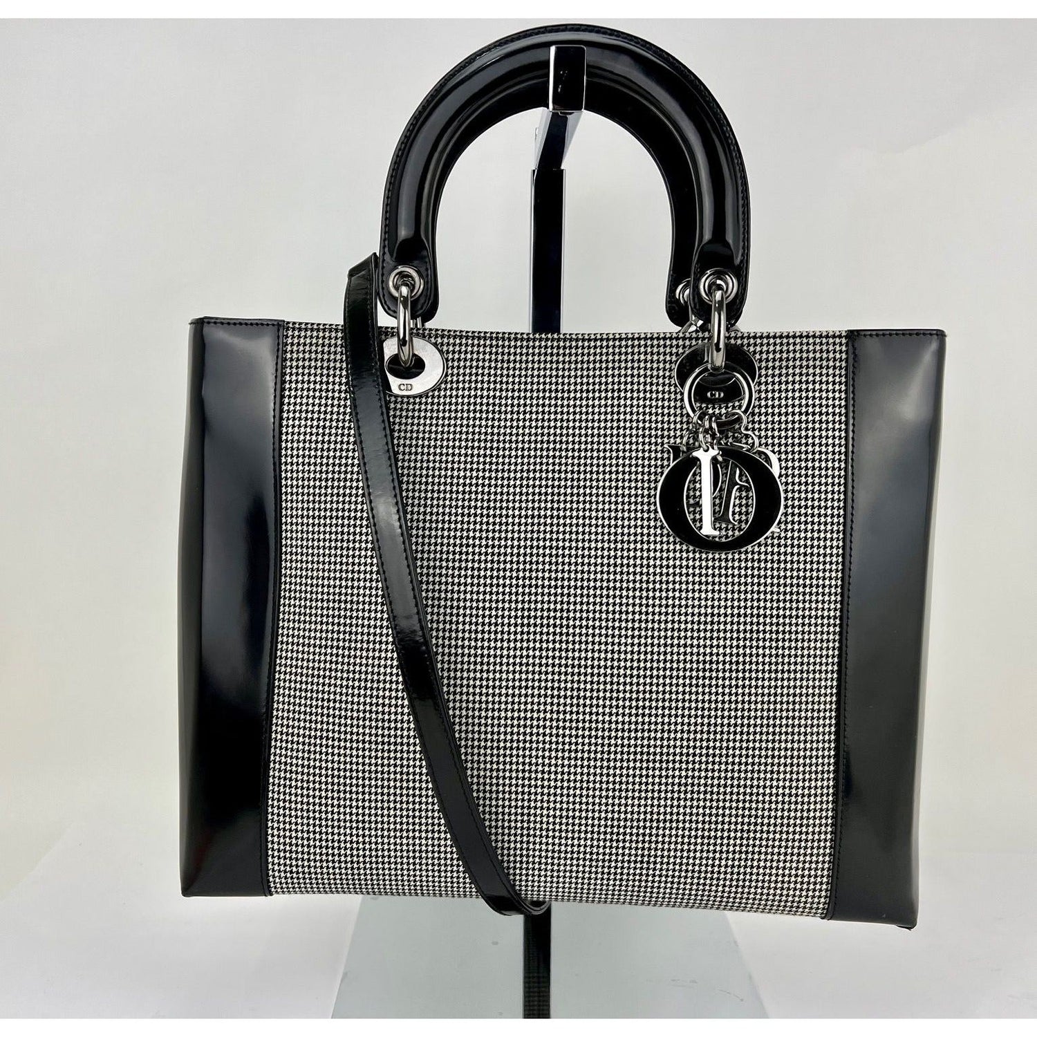 Christian Dior Large Lady Black Patent Leather Canvas Hand Bag
