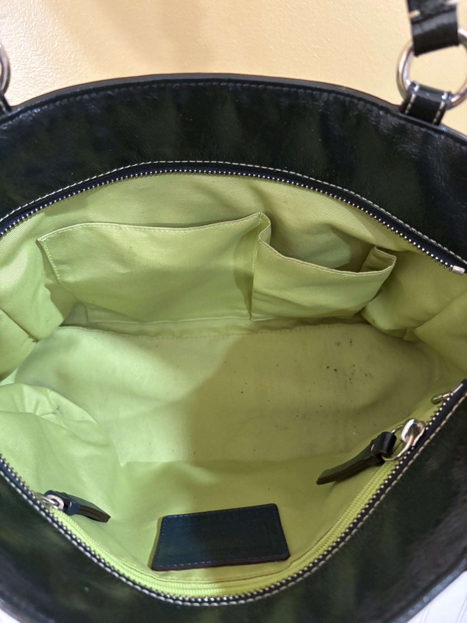 Coach Tote Dark Green Handbag Purse (Interior Wear)
