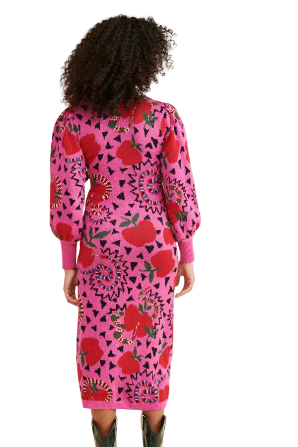 Pink Snake Fruit Sweater Dress