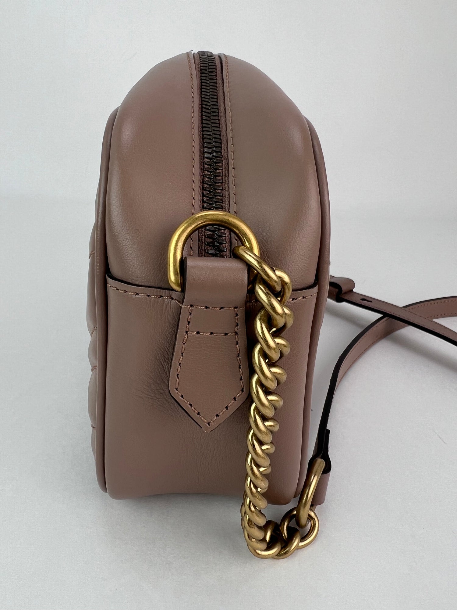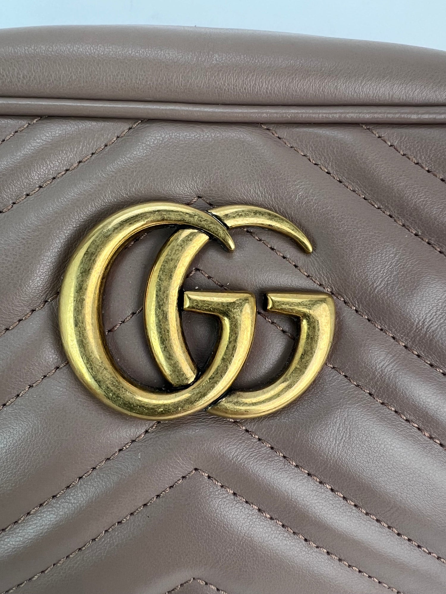 Gucci GG Marmont Small Chain Beige Matelasse Leather Crossbody Bag