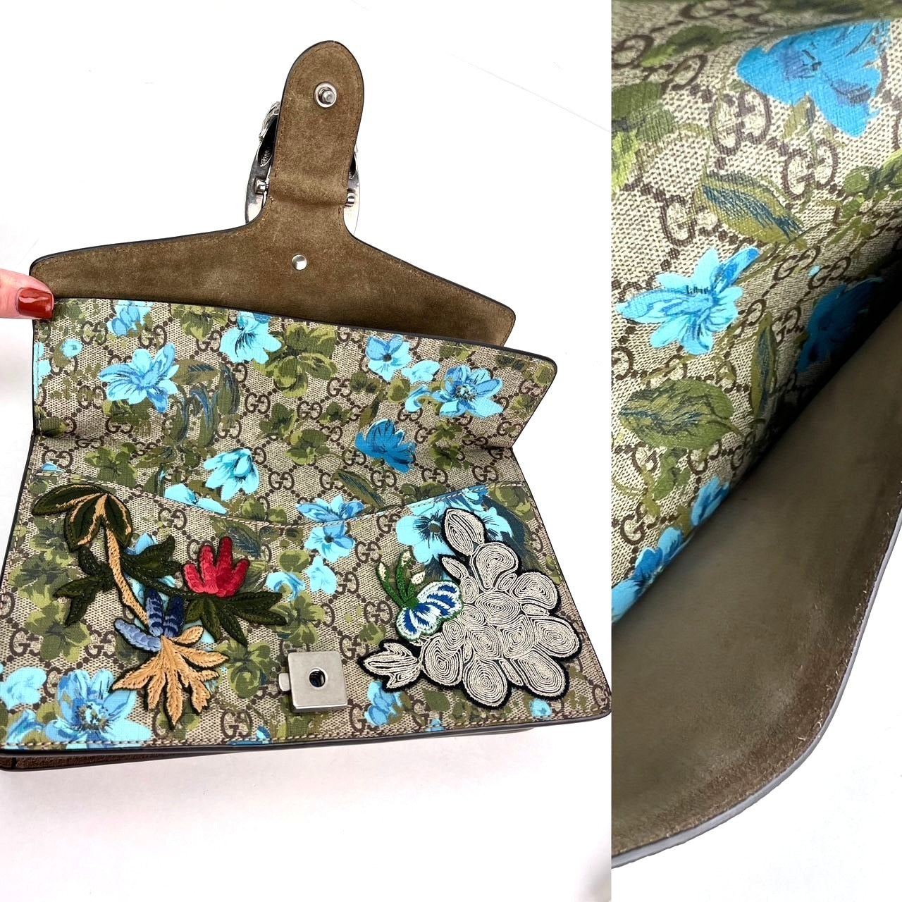 Gucci GG Supreme Blooms Print Embroidered Medium Dionysus Shoulder Bag Blue Taupe
