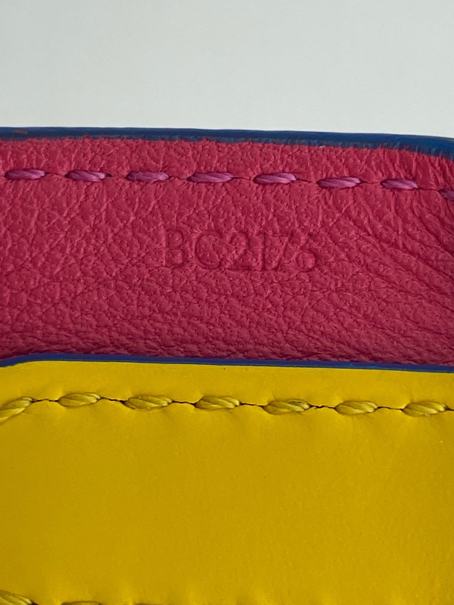 It is black Epi on 1 side with a smooth pink leather on the other side