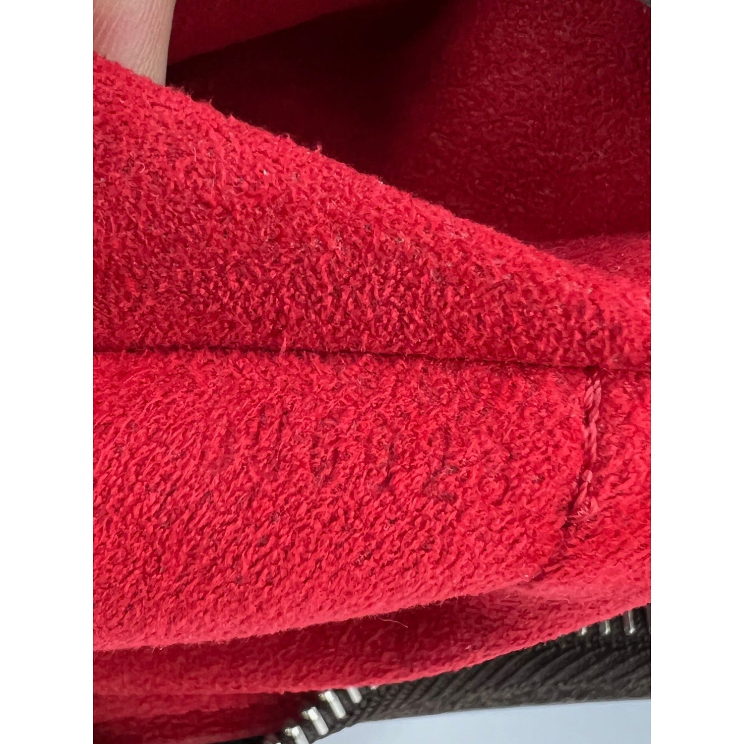 INTERIOR: red microfiber, clean, 2 sections , 2 smaller open pockets