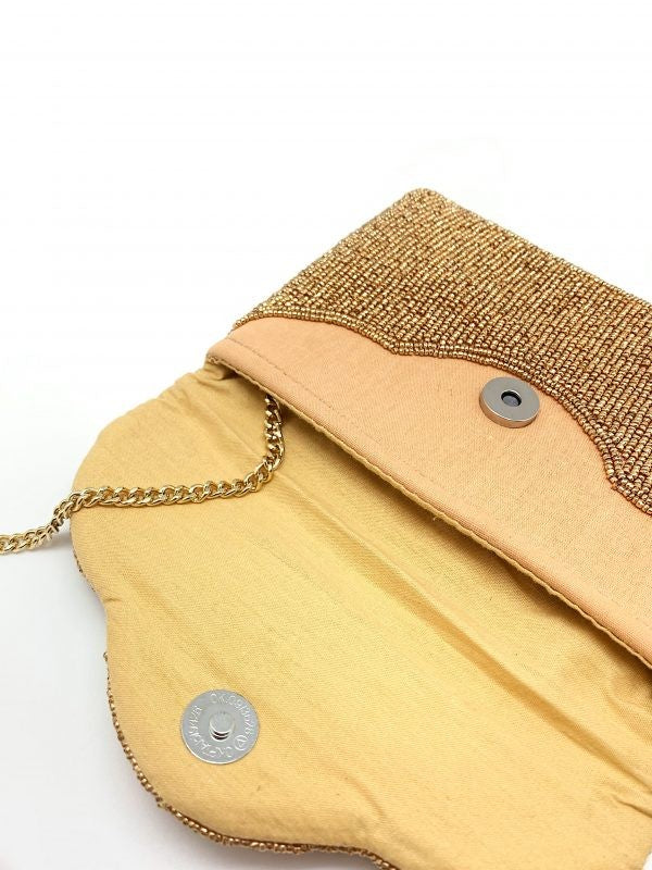 Clutch measures 7inches wide by 5inches tall and 1inches deep (relaxed) 0.65 lbs