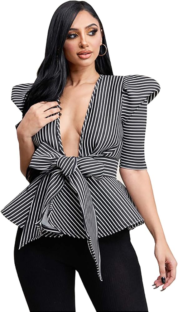 SYLeMAC Striped Super Tech Tie Front Top Size Small