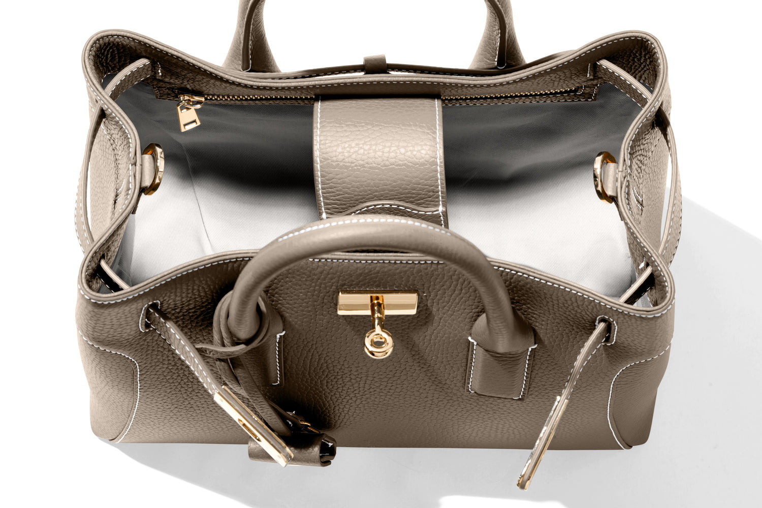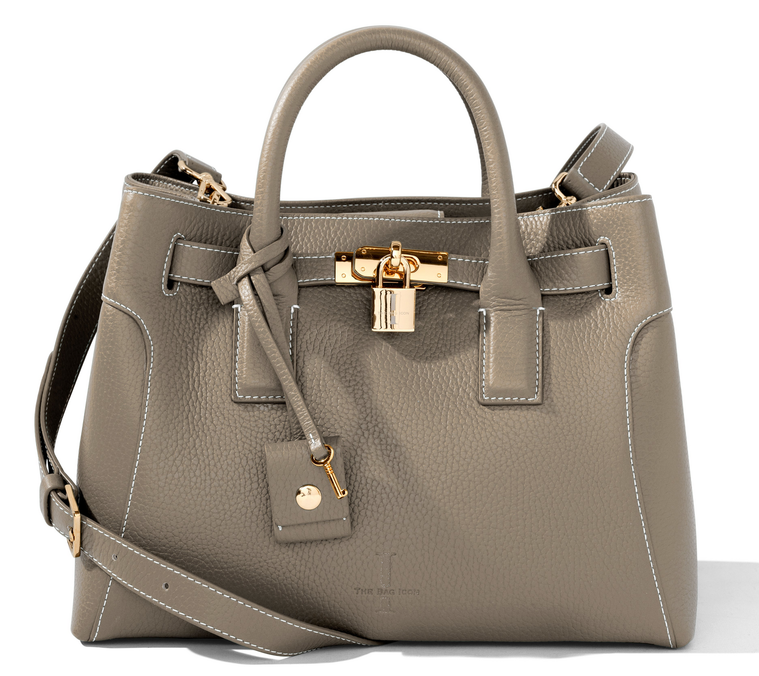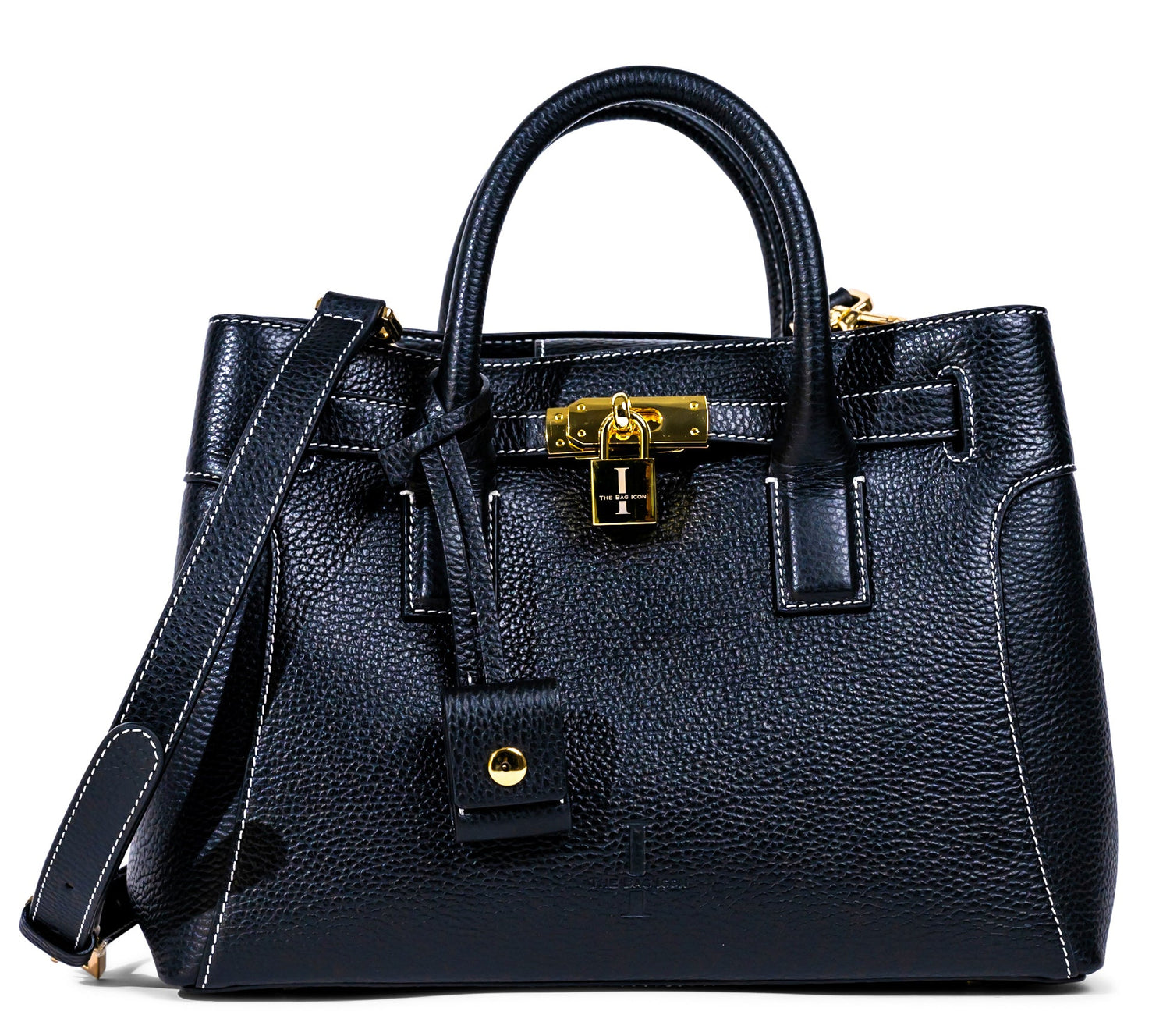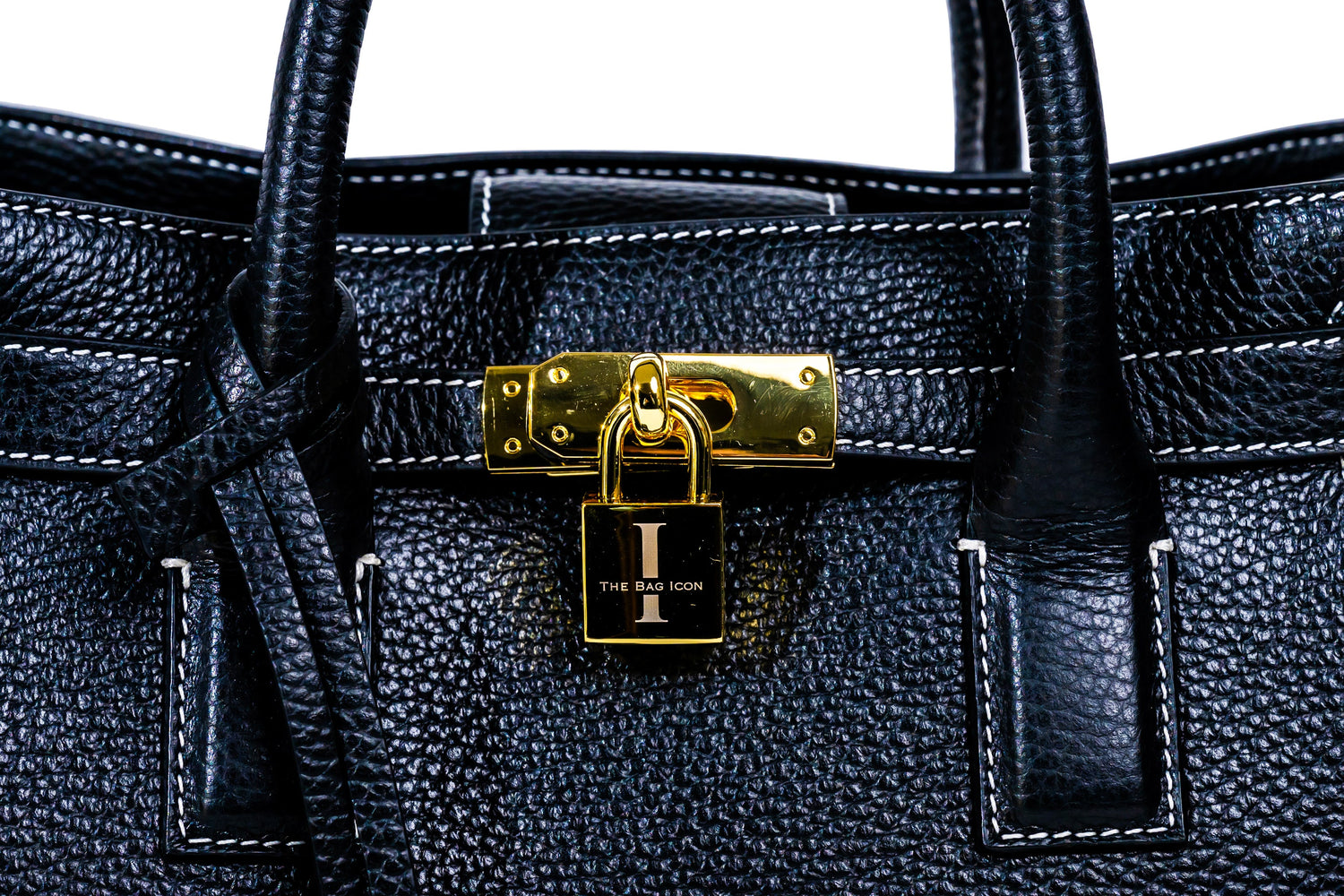 This very special handbag was designed to honor the owner's late mother, SHARON CLAUDIA. Handmade in Italy, this classic tote bag exudes sophistication and features soft yet durable full grain pebbled leather and bold gold hardware.